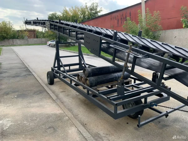 Передвижной конвейер используются для транспортировки сыпучих грузов. Транспортируемый материал не рассыпается, поскольку по центральной оси ленты образуется углубление за счет наклонного расположения роликов. Протектор на ленте предотвращает продольное проскальзывание частиц вещества. Такие конвейеры используют в производстве, горнодобывающей промышленности, при погрузочно-разгрузочных работах.